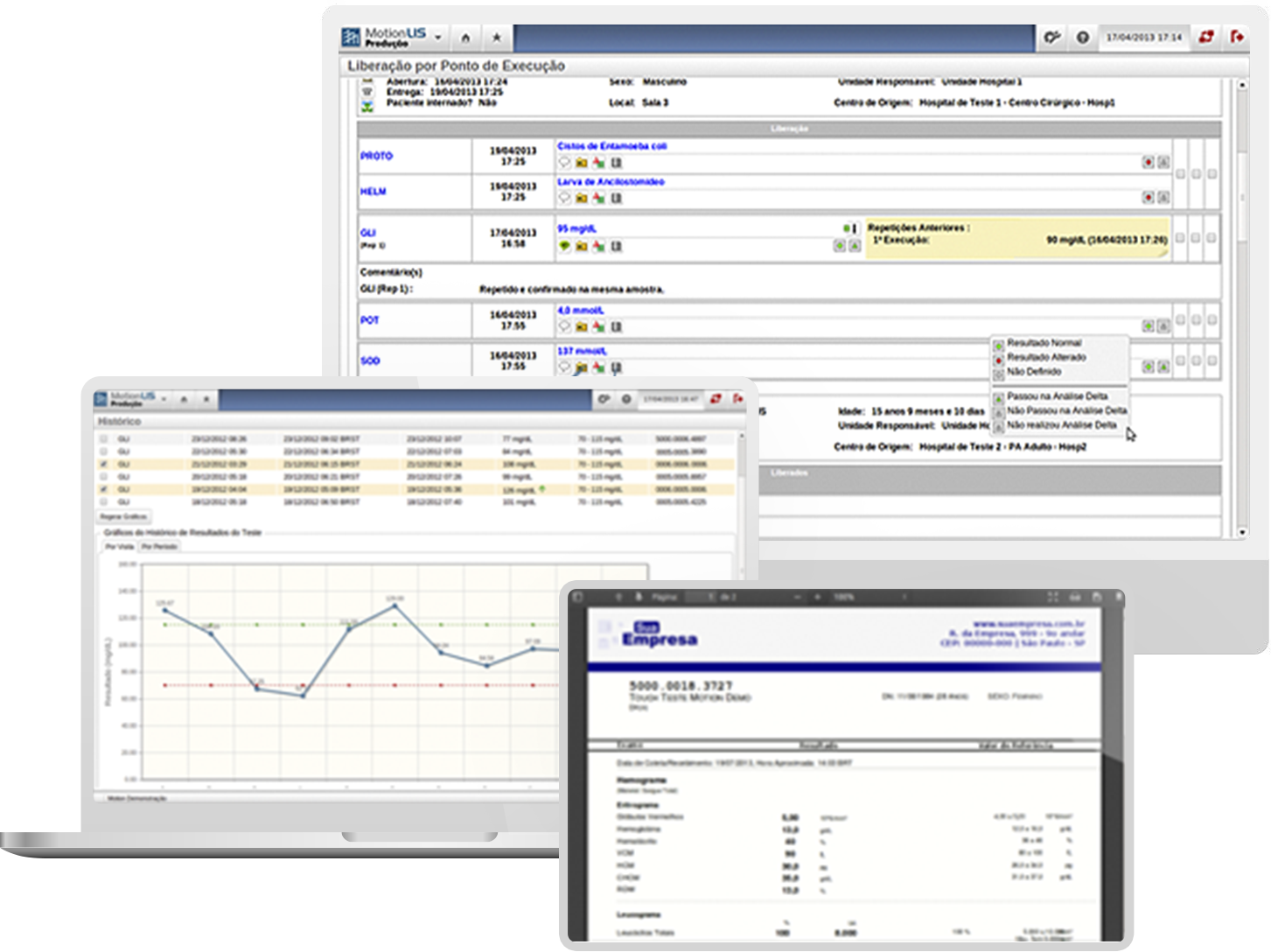 O MotionLIS é um sistema de informação laboratorial (LIS) completo, altamente configurável, robusto e seguro, com versatilidade para uso em diversas operações de missão crítica, em rotinas ambulatoriais e hospitalares. Use-o para gerenciar todo o processo de produção de exames, desde a abertura das fichas até a disponibilização dos laudos.